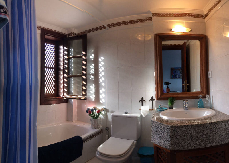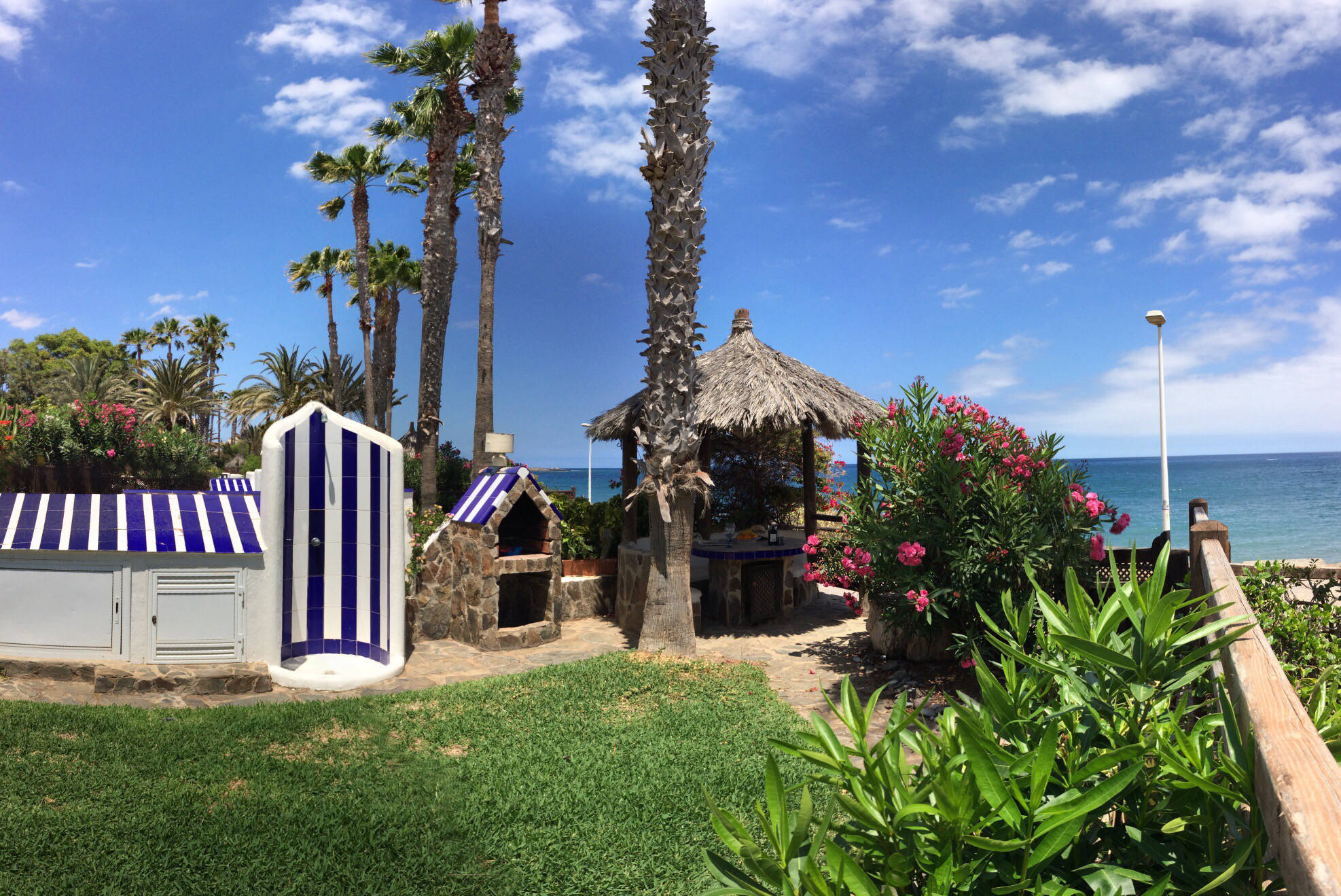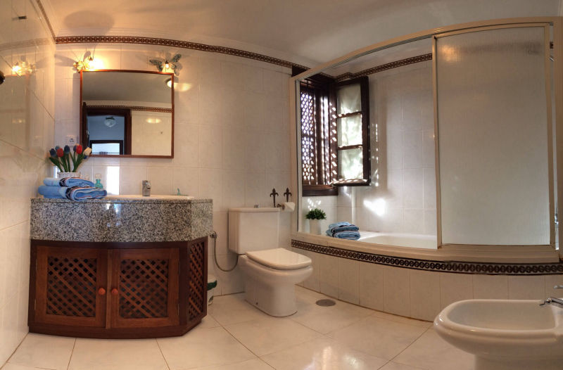 The VILLA DEL MAR is situated directly on the sea front, which offers total privacy with an excellent infrastructure. The combination of Spanish and Moroccan architecture will enchant you immediately. The spacious living area offers plenty of room for your family as well as your guests. The wonderful view from the living room overlooking the sea will put you in a relaxed mood immediately. In the fully equipped kitchen (which includes an CERAN-oven, hob, refrigerator, freezer, dishwasher, etc.) meals can be prepared at ease. Not only the living room but also the three ample en-suite bedrooms are exclusively furnished. Enjoy dining with a stunning sea view from the round table in a Spanish style oriel. The secluded and spacious terrace and garden surrounded by tropical plants invites for unimpaired sun-bathing.